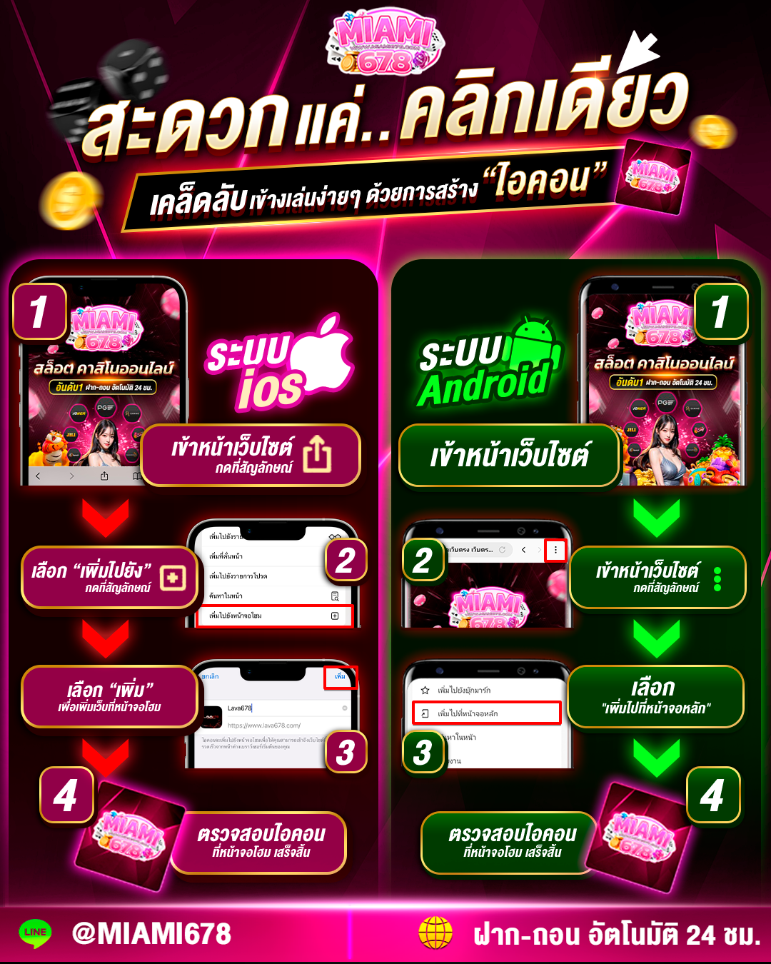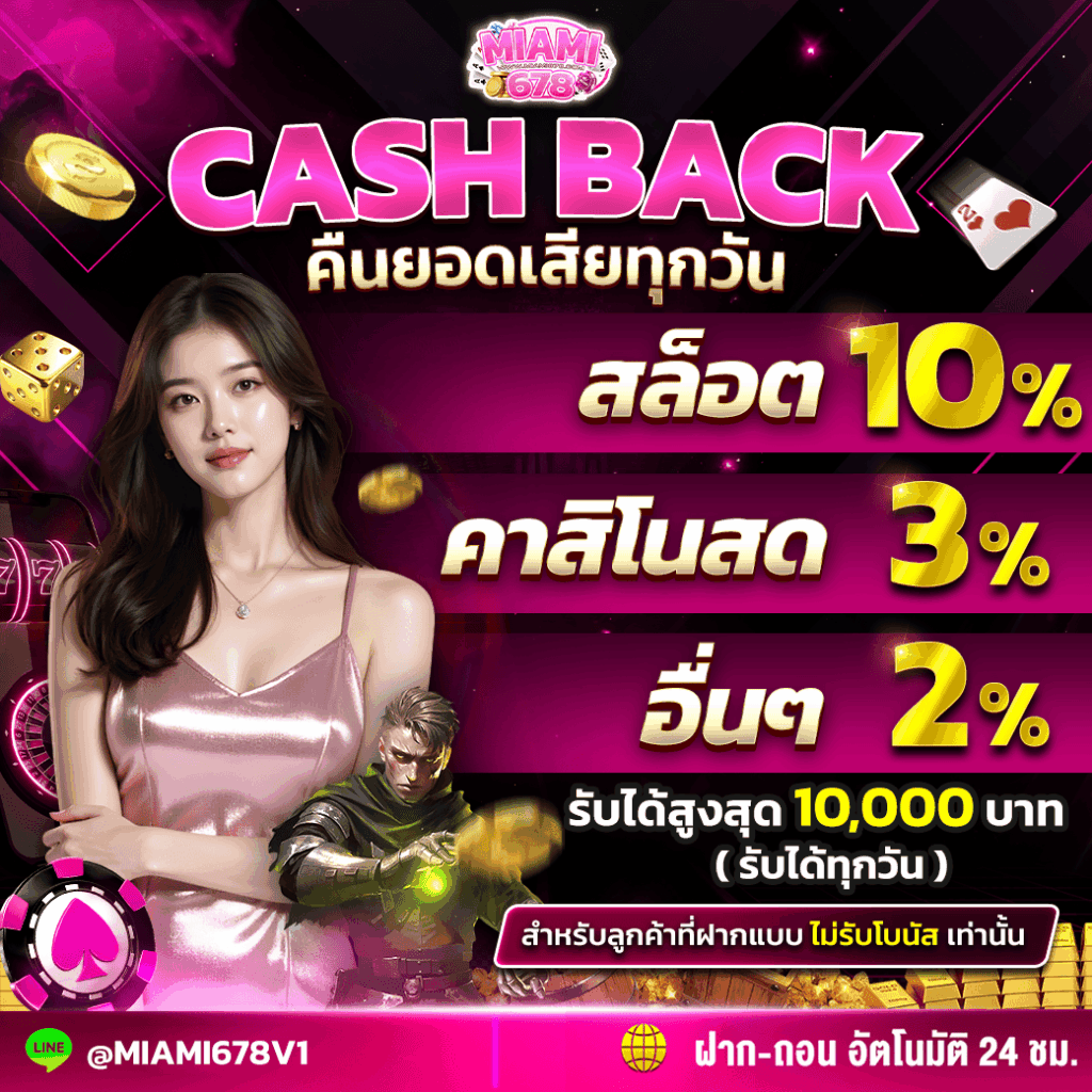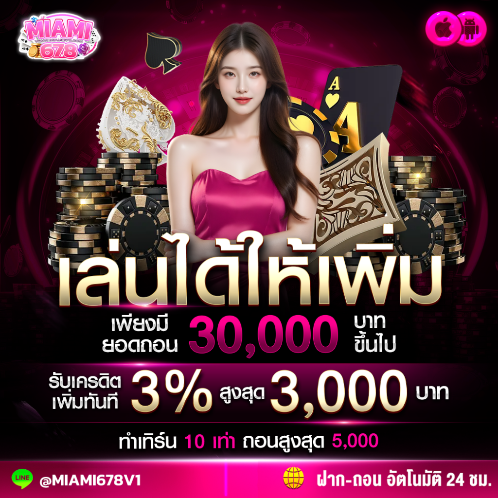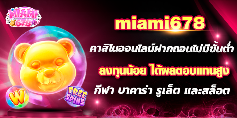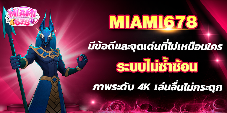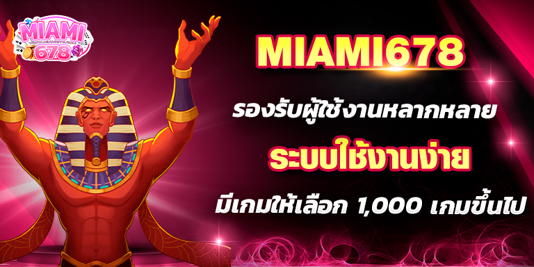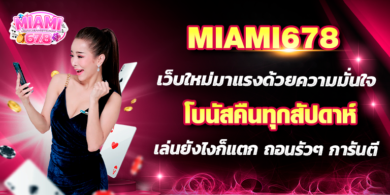 ทางเว็บไซต์ สล็อต678 มีเกมให้ได้เลือกเล่น มากกว่า 100 เกม ท่านสามารถสนุกสนาน เพลิดเพลิน อย่างไม่มีสดุดด้วยระบบ ฝาก-ถอน ที่ทันใจ คนรุ่นใหม่ในยุค 5G ที่ทุกท่านรอคอย อยู่ที่นี้แล้ว miami slot เว็บเดียวจบครบ! สล็อต ยิงปลา ไฮโล ฟุตบอล มวย หวย คาสิโนต่าง ๆ คาสิโนออนไลน์ เกมไพ่ บาคาร่าหรือแบล็คแจ็ค